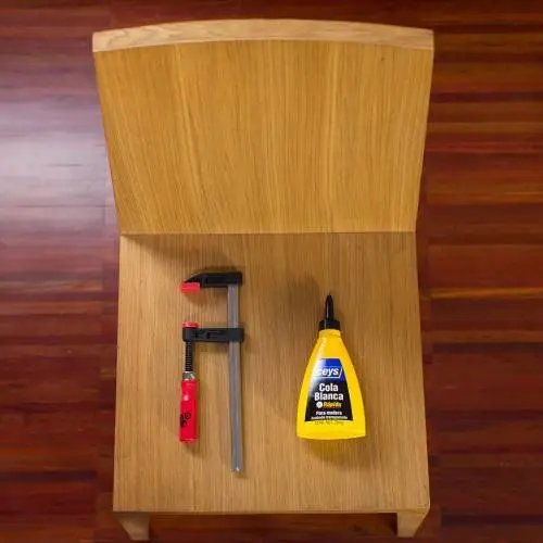 Con la ayuda de un sargento mantenemos presionadas las partes que hemos pegado y dejamos secar 24 horas.