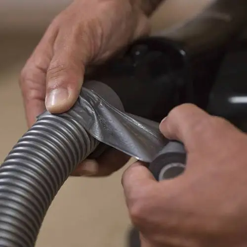 Estiramos la cinta americana para empezar a cubrir la junta del aspirador.