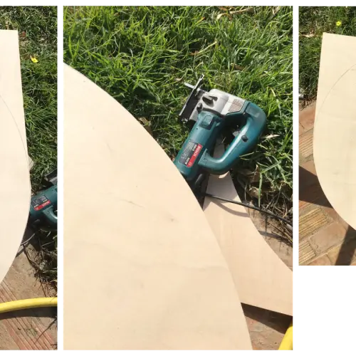 Compré un tablero de contrachapado de 0,5 cm y lo corté a medida con la sierra de calar usando una hoja especial para este tipo de madera. La hoja tiene que ser una que tenga los dientes en doble dirección,así el corte sale limpio y no se astilla.