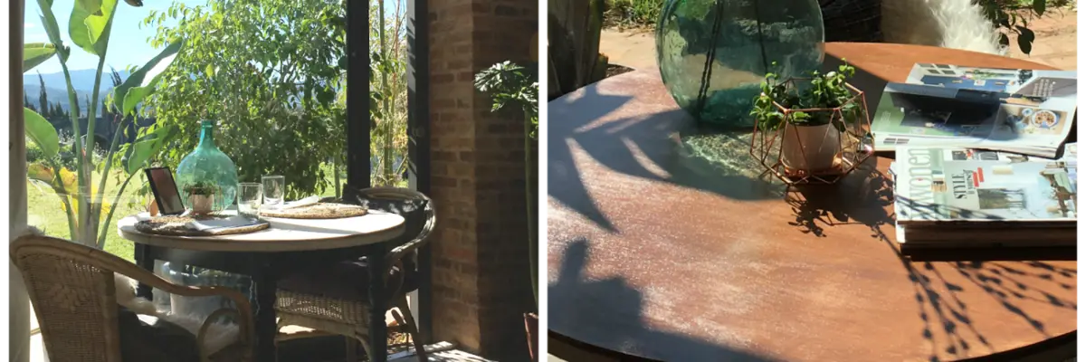 La mesa tiene un trozo central que hace que se convierta en una mesa ovalada donde caben 6 personas en vez de 4 pero se lo quité.