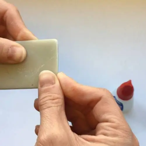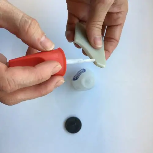 Unir las dos partes de la base del imán. Aplicar UltraUnick cuidadosamente en los dos extremos de la pieza a pegar.