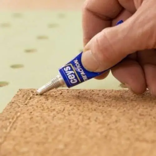 Pega todos los materiales que quieras poner en el tablón con CEYS Tri’Action. Para conseguir una mayor resistencia en el pegado, se recomienda no pintar la parte de la madera en la que aplicaremos el adhesivo.