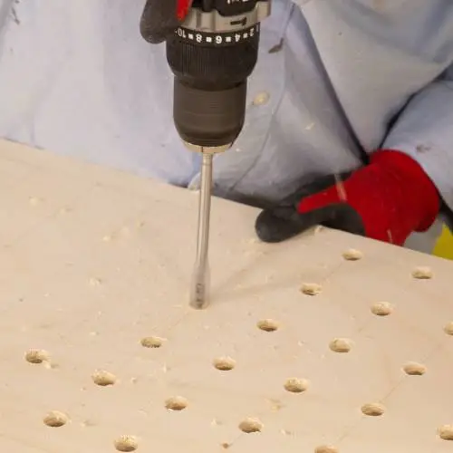 Guíate con los vertríces de la cuadrícula para hacer los agujeros a la madera.