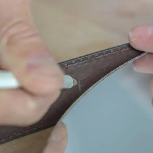 Marcar la posición del cinturón en la madera con la ayuda de un lápiz.