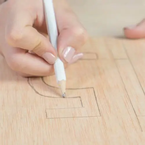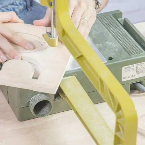 Cortar el dibujo con cuidado, usando una sierra de marquetería.