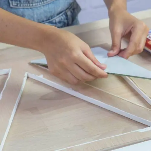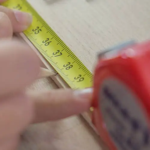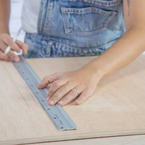 Medir el tamaño final que va a tener el espejo, teniendo en cuenta el grosor elegido para el marco. Con ayuda del lápiz, marcar las medidas en la madera fina.