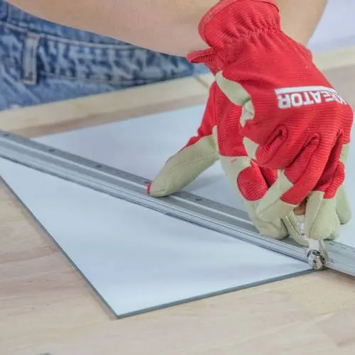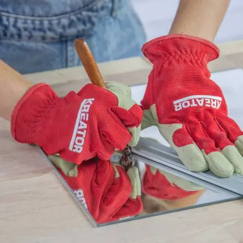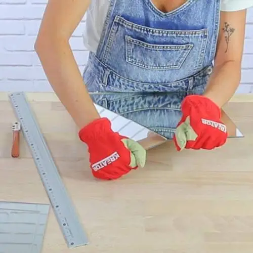 Usando los guantes, romper el espejo con las manos y doblar el cristal por la zona de corte.