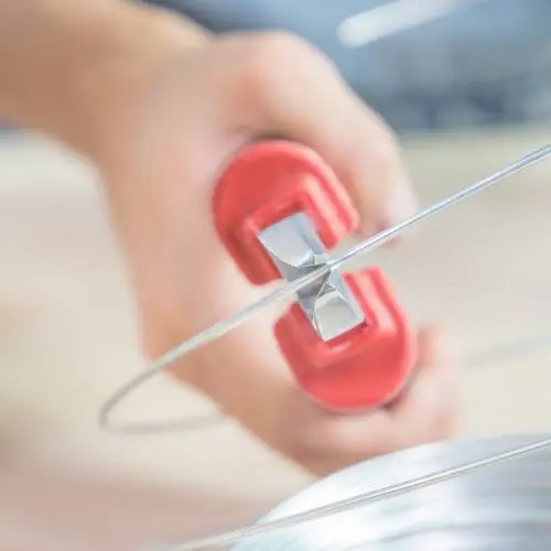 Cortar un poco de alambre con ayuda de unos alicates.
