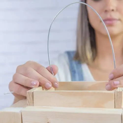 Introducir cada extremo del trozo de alambre por los agujeros.