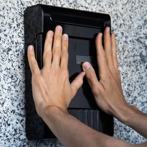 Juntar el buzón a la pared moviéndolo ligeramente para asentar bien el adhesivo y presionar fuertemente durante unos segundos.