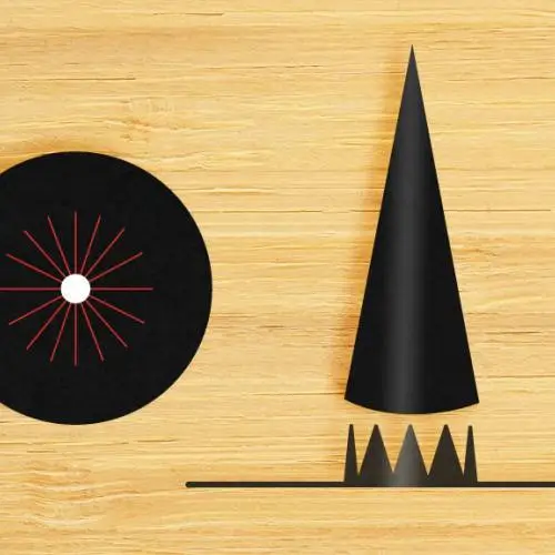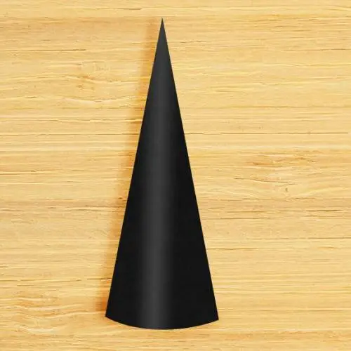 Para hacer el gorro, enrollamos la cartulina negra a modo de cucurucho. Debe ajustarse bien al tamaño de la cabeza. Cuando lo tengamos, lo pegamos con Cola Blanca.