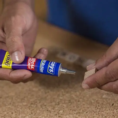 Cuando nos hayamos decidido, pegamos las piezas al corcho con Ceys Triaction y dejamos secar.