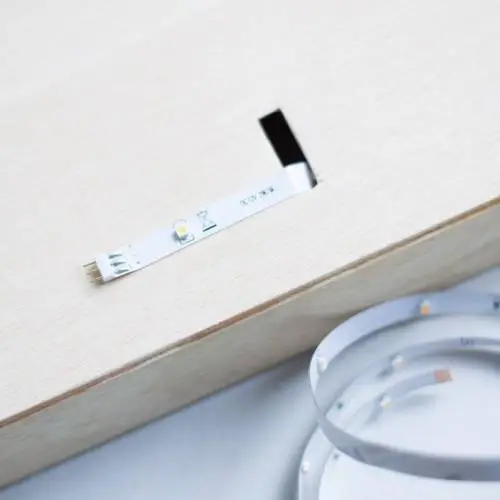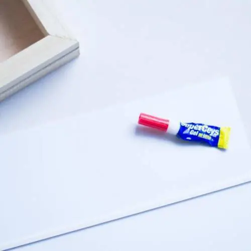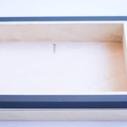 Con Superceys gel pegamos a los listones negros las 2 miniguías hacía afuera, de modo que podamos introducir por ella las láminas para las letras. Cuando nuestra caja esté lista, podemos lijar los bordes, si queréis pintarla el momento de hacerlo es ahora. Nosotros lo dejamos en tono madera natural.