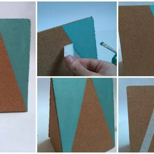 Tercer y último paso es la parte de pintar, donde quedará más vistoso nuestro "expositor". Con la cinta de enmascarar puse un trozo para cubrir la zona que quería y empecé a pintar, en este caso de color menta. Cuando secó un poco, enmascaré el otro lado y lo pinté, ¡ah! también pinté los laterales.