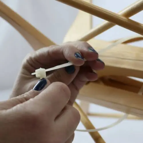 Formar la estructura de la mesa y revisar que la mesa no quede inestable. Retirar el sobrante del pegamento y las bridas.
