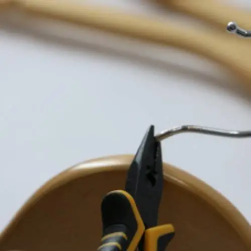 Quitar de las perchas la parte de aluminio, es decir, el colgador. Para ello usamos los alicates, hacemos un poco de fuerza y enseguida se corta.