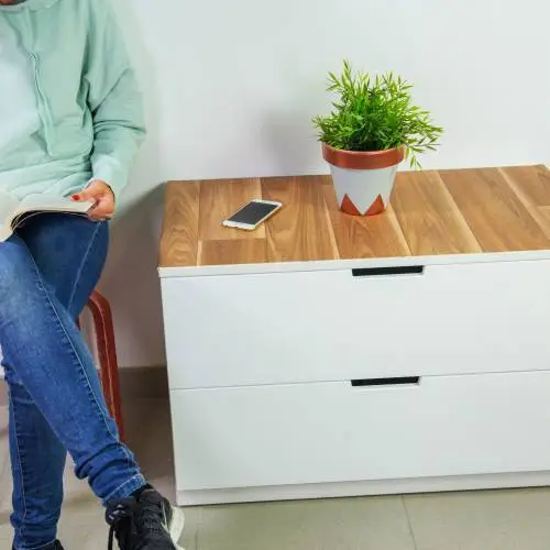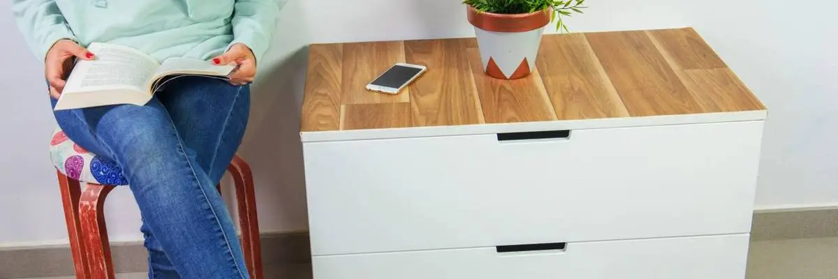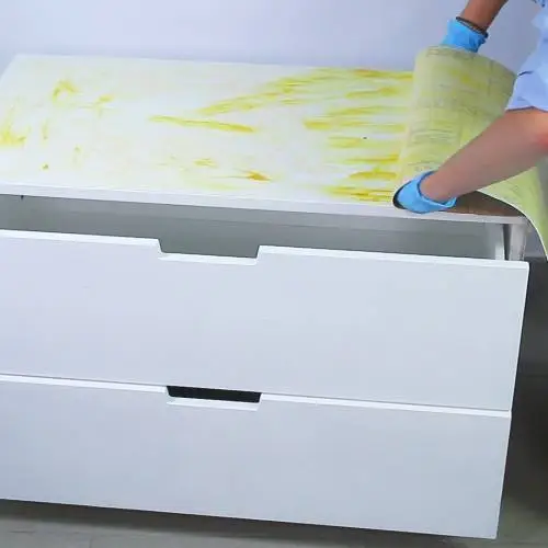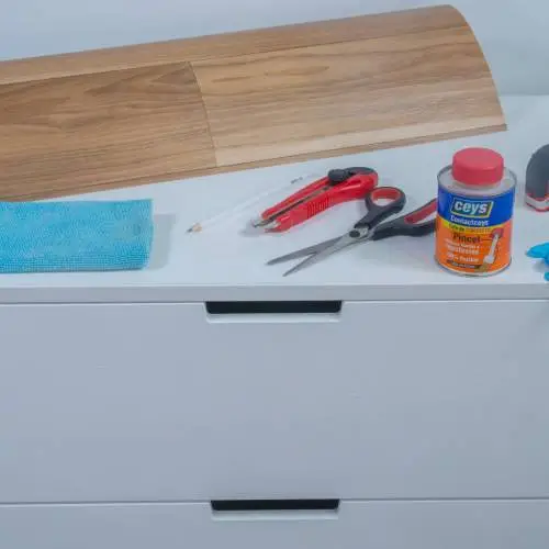 Limpiar bien las superficies de la cómoda a pegar con cola de contacto con un trapo.
