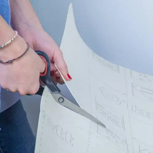 Cortar el vinilo por las marcas con unas tijeras, dejando un borde de seguridad de 1 cm.