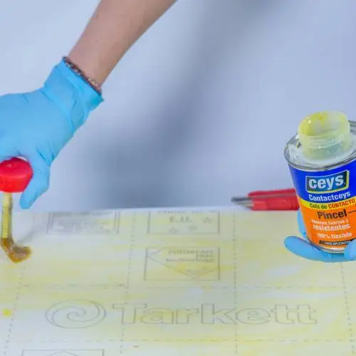 Aplicar una capa fina de cola de contacto en las dos superficies a unir.