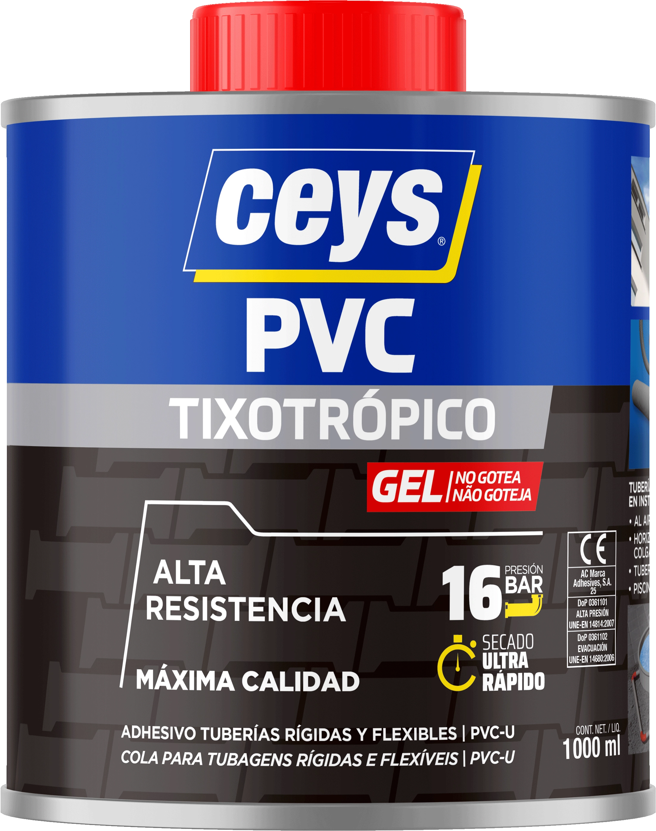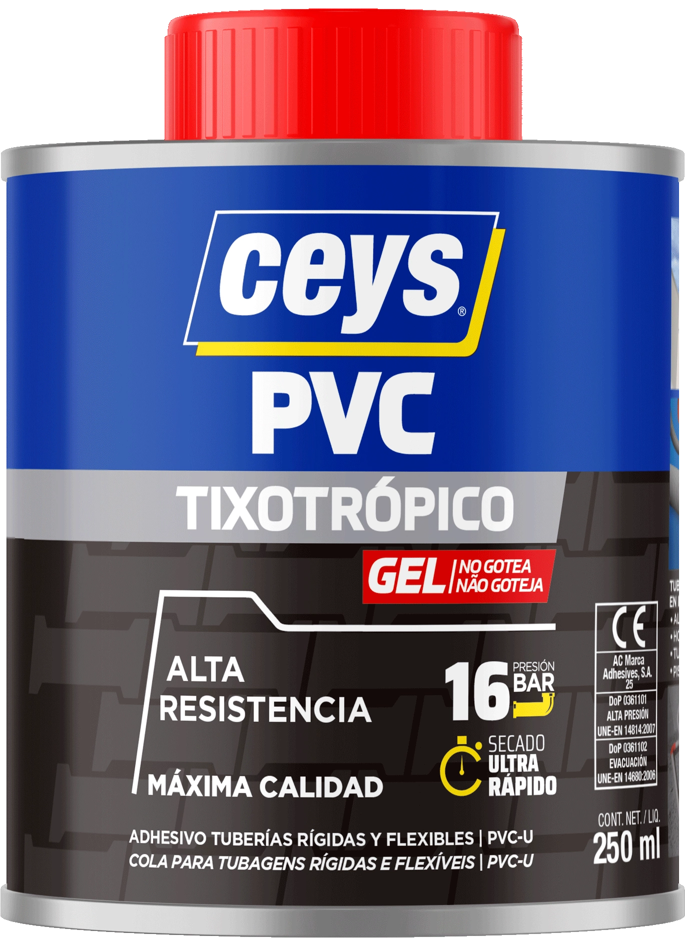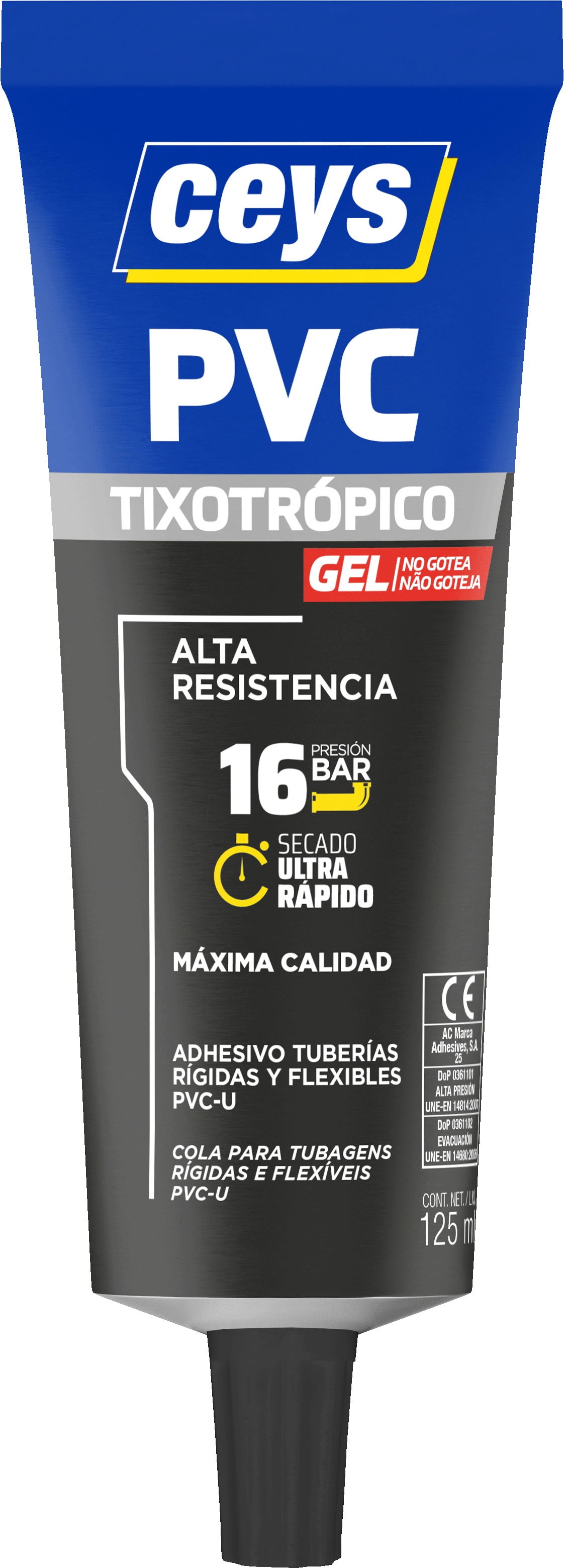 Adhesivo soldador con alta tixotropía para tuberías y materiales de PVC rígidos y flexibles en instalaciones que deban soportar presión y evacuación.