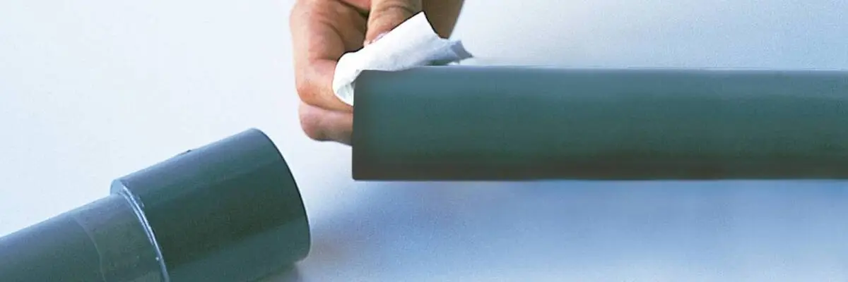 Limpieza de las uniones antes de aplicar el adhesivo de PVC correspondiente a la tipología de instalación y tubería.
