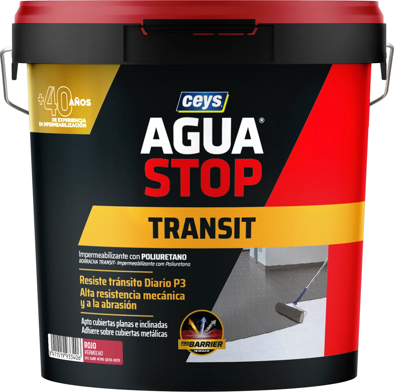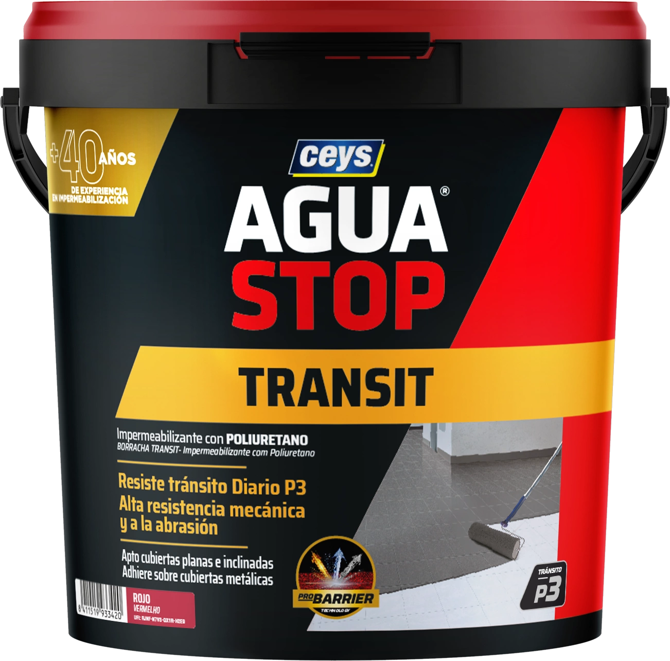 AGUASTOP TRANSIT es una membrana impermeabilizante transitable para trabajos de impermeabilización de cubiertas, azoteas y soladas. Gracias a su fórmula con poliuretano tiene mayor resistencia al desgaste y al tránsito, permite el tránsito peatonal diario. Su textura permite una gran capacidad de cosido de fisuras sin necesidad de tratamiento reconstructor previo.