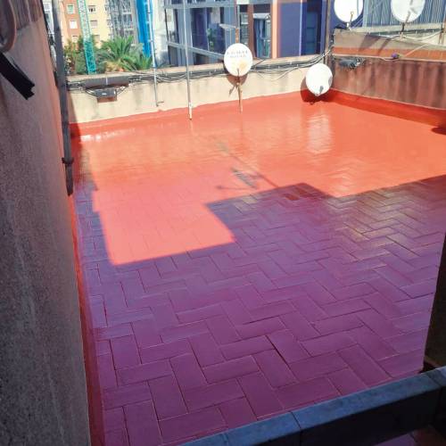 4. CUBIERTAS NO TRANSITABLES: Aplicación de 2 capas cruzadas a 90º de Aguastop Transit de 1kg/m2 por capa. Dejar 24h de secado entre capas.