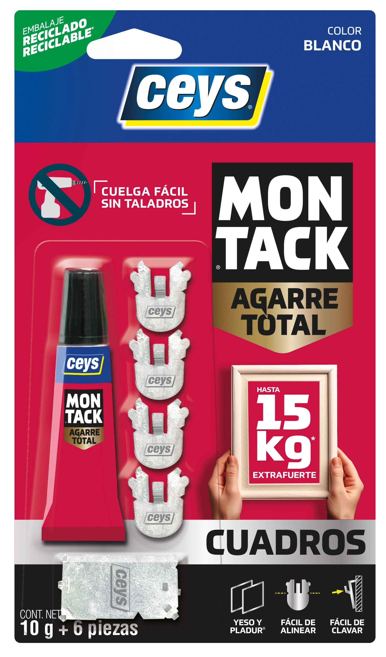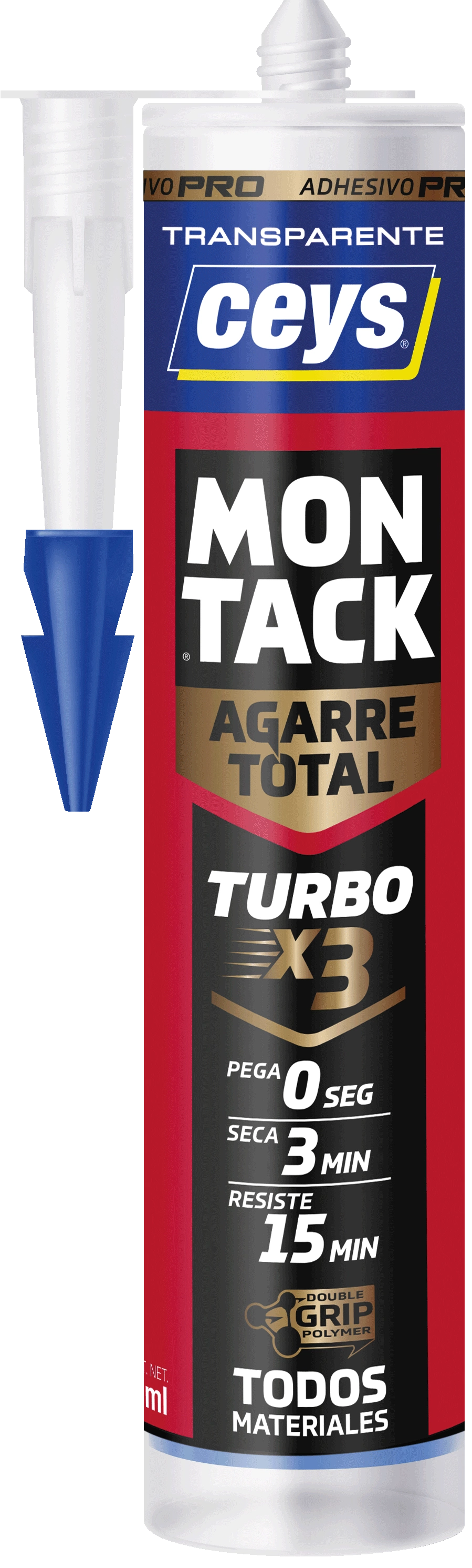 Adhesivo de montaje TURBO de Agarre Total. Gracias a su tecnología exclusiva DOUBLE GRIP pega y fija ULTRA RÁPIDO y fuerte. Las piezas quedan fijadas a los 15 min.