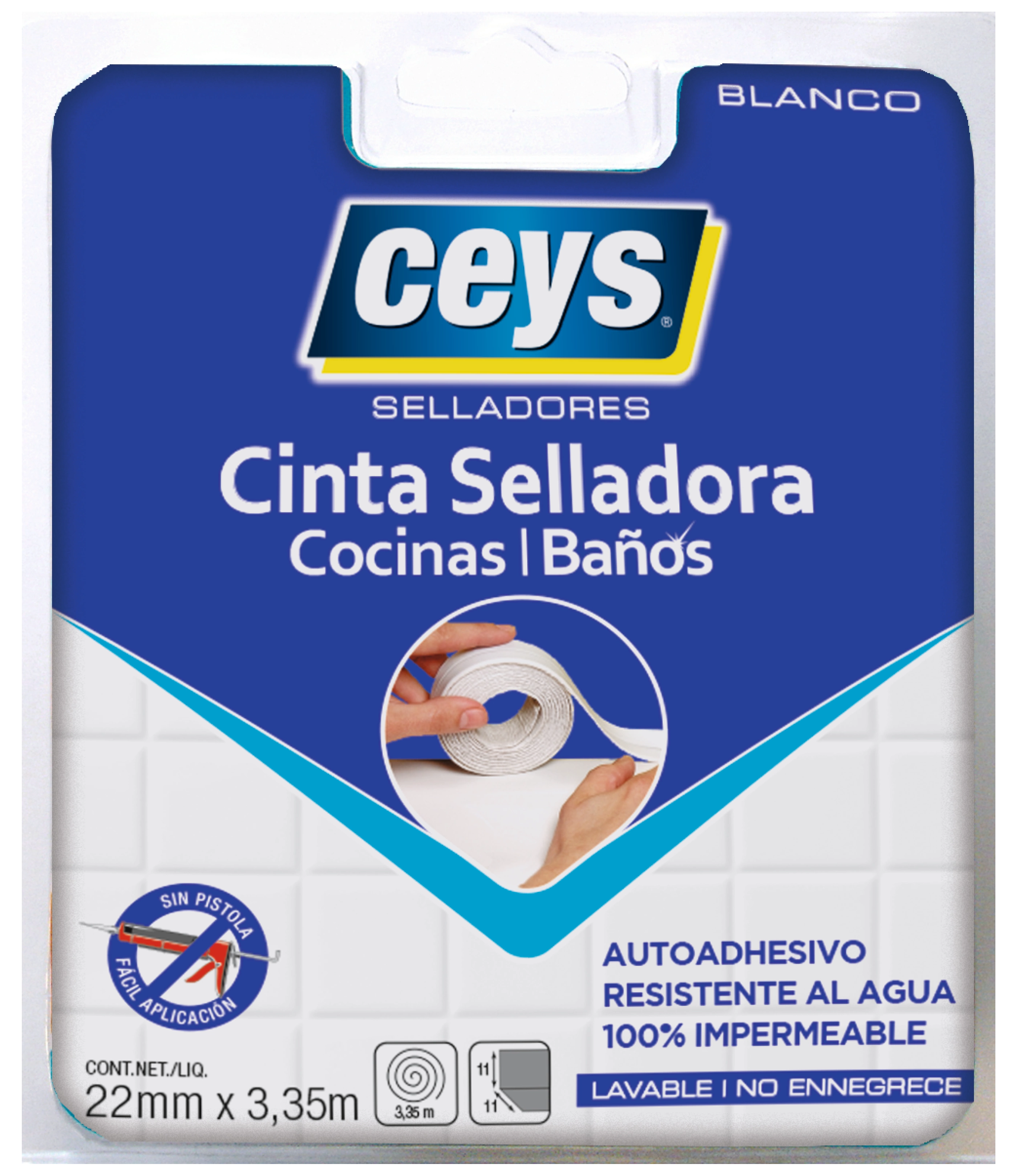 Ceys Cinta selladora se puede limpiar con cualquier tipo de detergente tradicional. Evitar el uso de productos abrasivos. Guardar la cinta sobrante dentro del estuche
