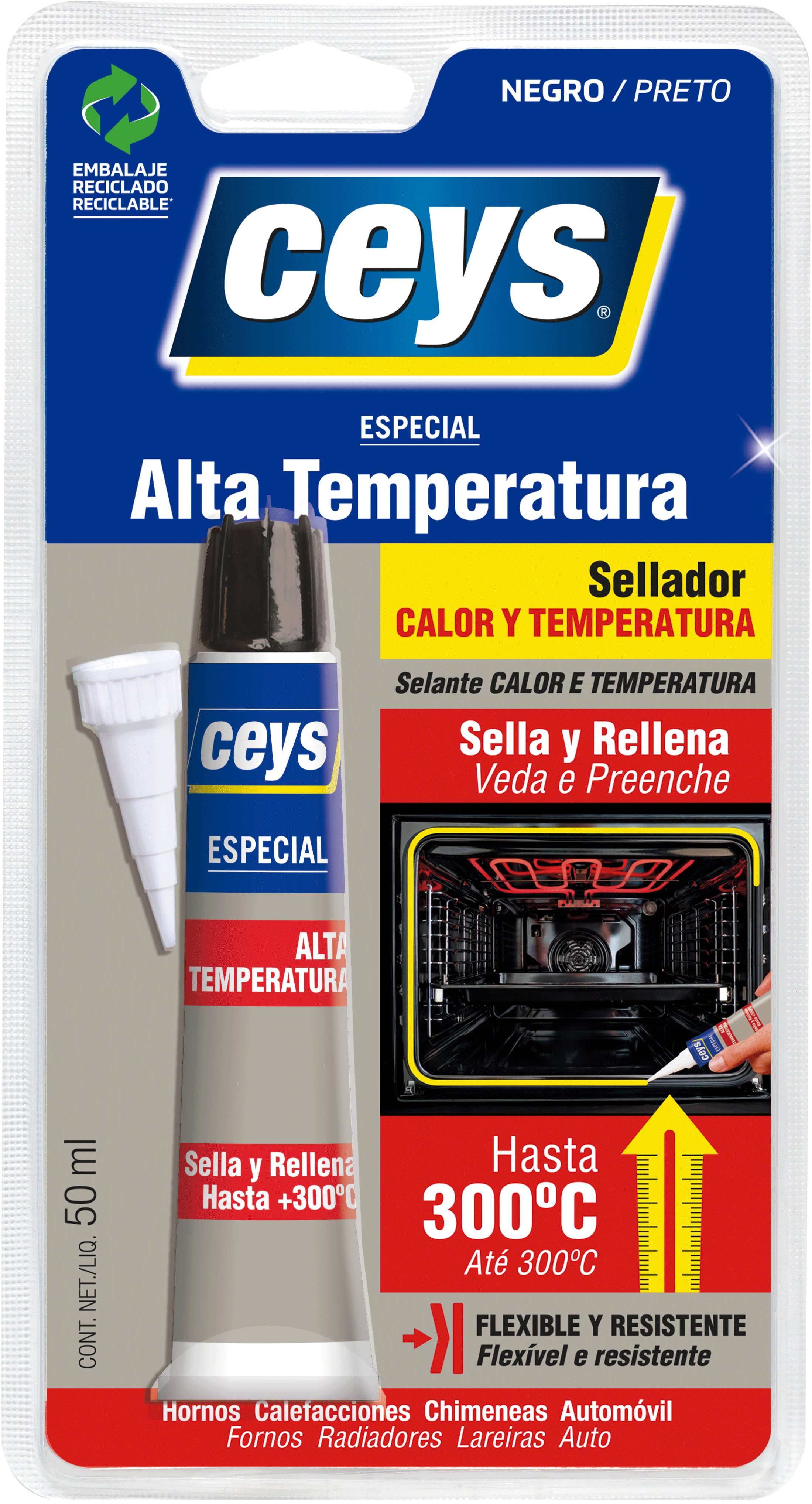 Sellador silicona ácida formulado especialmente para resistir temperaturas entre -70ºC y +3000ºC. Color negro. Flexible.