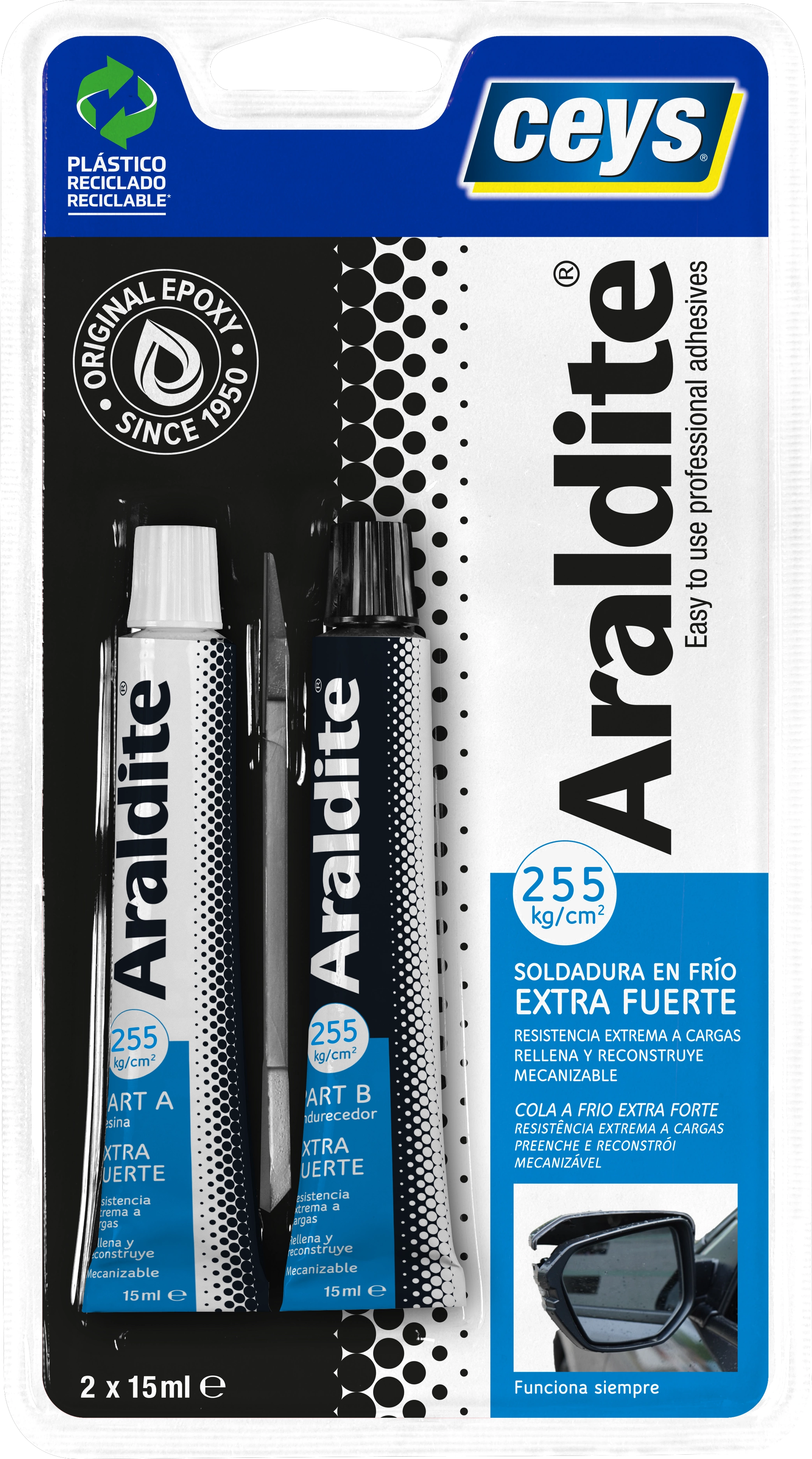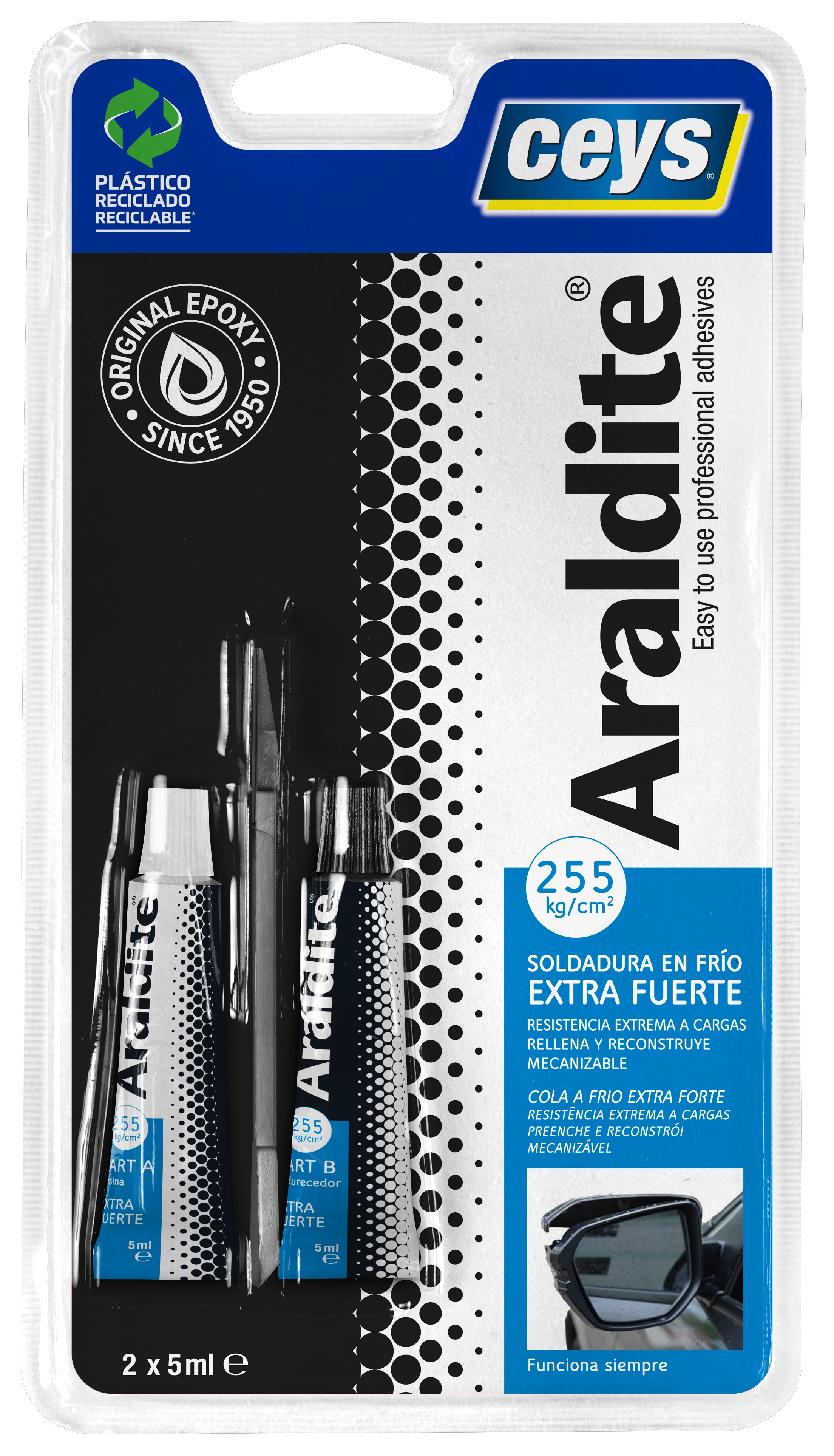 Adhesivo epoxi de dos componentes, una resina y un endurecedor, que reaccionan al mezclarse. Es el adhesivo recomendado para todo tipo de uniones de gran resistencia. Soldadura en frío de metales, plásticos y más.
