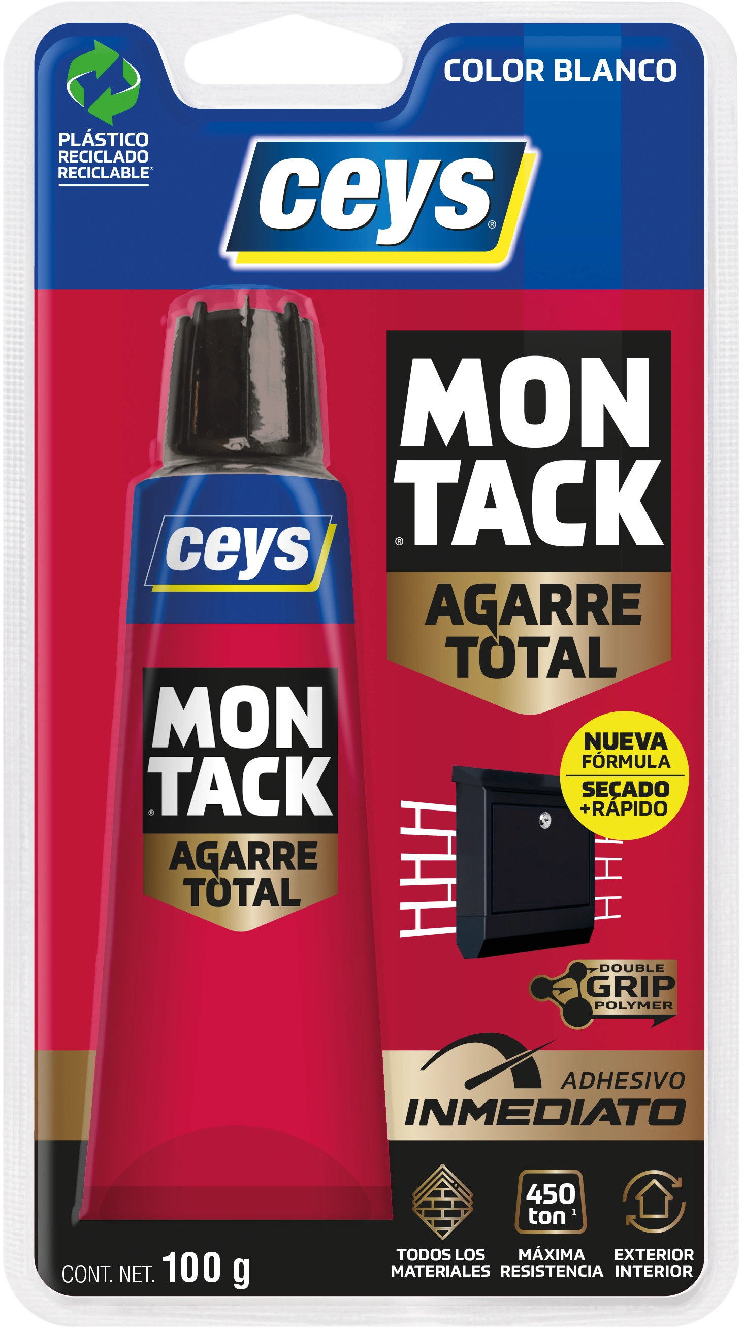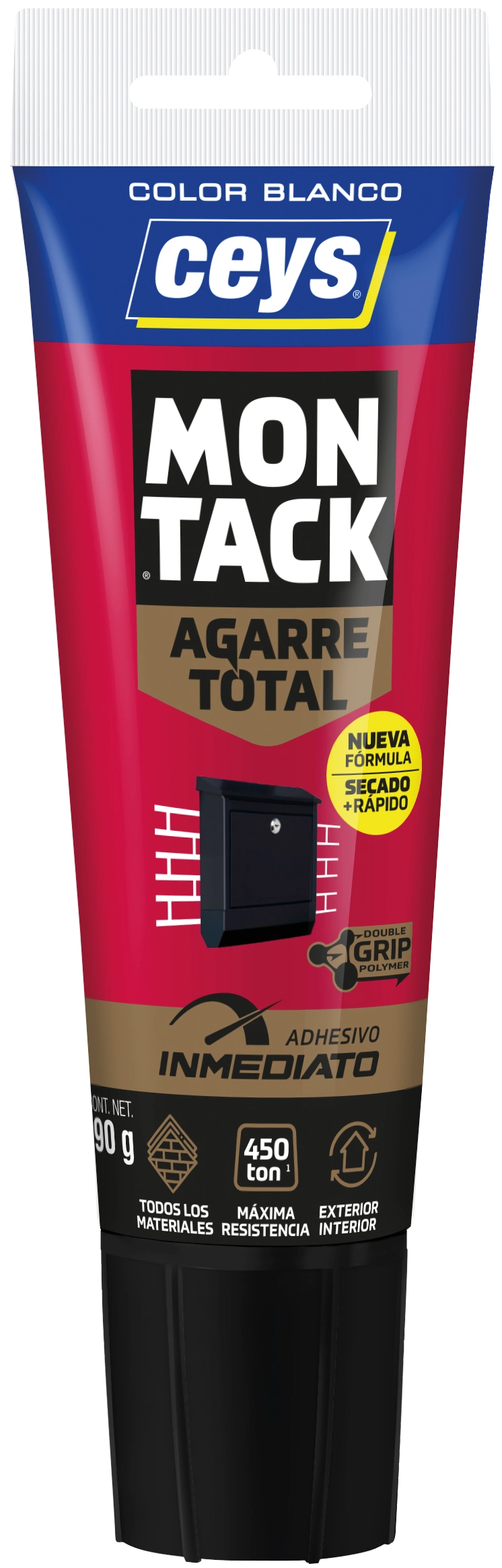 Adhesivo de montaje de Agarre Total. Gracias a su tecnología exclusiva DOUBLE GRIP, pega y fija RÁPIDO y ULTRA FUERTE.